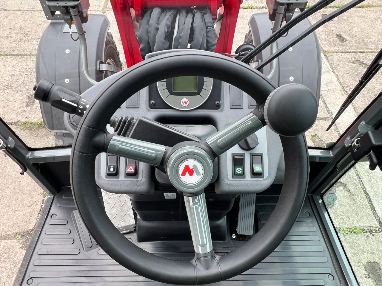 Ausstattung: Zugmaul, Allrad, Hydrostatischer Antrieb, Klimaanlage - manuell, Kabine, Diesel, Steuergerät - Doppelt wirkend (1x), Radio, Luftgefederter Sitz, Arbeitsscheinwerfer 2x hinten, Arbeitsscheinwerfer 4x vorn, Zahnradpumpe, Schnellwechselrahmen, Teleskoparm (Längenverstellung), Hydraulische Geräteverriegelung