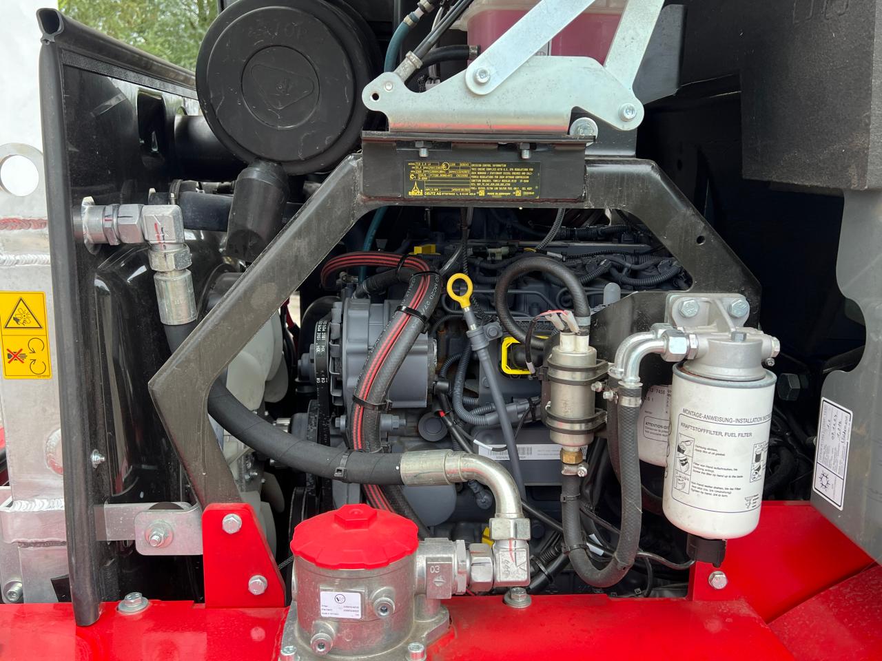 Beschreibung:WEIDEMANN 3080T TELESKOP-RADLADER Technische Daten: Gesamtlaenge (ohne Schaufel): 5.135 mm Hoehe: 2.631 mm Gesamtbreite (mit aktueller Bereifung): 1.944 mm Bodenfreiheit: 323 mm Max. Hoehe Schaufeldrehpunkt: 5,016 mm Max. Kipplast mit Schaufel grade: 2.815 kg/1.554kg ausgefahren Betriebsgewicht: 5.400 kg Serienausstattung: Hydrostatischer Allradantrieb, Fahrtrichtung waehlbar ueber Joystick Betriebsbremse: Hydrostatischer Fahrantrieb auf alle 4 Raeder wirkend (verschleissfrei) Zentrale Betriebs- und Feststellbremse im Antriebsstrang auf alle 4 Raeder wirkend Differentialsperre 100 %, elektrisch-hydraulisch zuschaltbar an Vorder- und Hinterachse Hydraulik 3. Steuerkreis vorne proportional ueber Joystick, inkl. Doppelraste; Hydraulikoelkuehler; druckloser Ruecklauf vorne Schwimmstellung fuer Hubzylinder Endlagendaempfung im Teleskopzylinder, beidseitig Lowering Assistant: Automatisches Einteleskopieren beim Absenken der Ladeanlage (abschaltbar) Kabine Komfortkabine hoch mit Heizung und Lueftung, seitlich kippbar, ROPS / FOPS geprueft Komfortsitz mit Sicherheitsgurt voll gefedert, Gewichts-, Ruecken- und Laengsverstellung Hydraulisch vorgesteuerter Joystick mit Fahrtrichtungsschalter und Taster fuer Differentialsperre u. Teleskopfunktion LED Arbeitsscheinwerfer 2x vorne und 2x hinten, Betriebsstundenzaehler, Kraftstoffanzeige Verstellbares Lenkrad Sonstiges Aufnahme Weidemann hydraulisch Beleuchtungsanlage nach StVZO Steckdose vorne 3-polig fuer doppelte Funktion (1. Funktion tastend, 2. Funktion rastend) Sonderausstattung: - Einzelbetriebserlaubnis> 25km/h - Großer Motor mit 75 PS - Arbeitshydraulik (103 l/min) Große Pumpe - Achse Hochdruck mit Sperre - Stoffsitz luftgefedert - Kabine komfort 2-tuerig hoch - 400/70 R20 Michelin Bibload - Geschwindigekeit 30 km/h - Steckdose Heckanbaugeräte 7-polig - Handgas - Kennzeichenhalterung - Klimaanlage - Anhaengekupplung automatisch 38mm - Langsamfahreinrichtung (Handinchung) - Radio mit DAB+ Empfang - Ladeschwingendaempfung Preis: 73.800 Euro + Steuer Arbeitsgeraete optional verfuegbar.