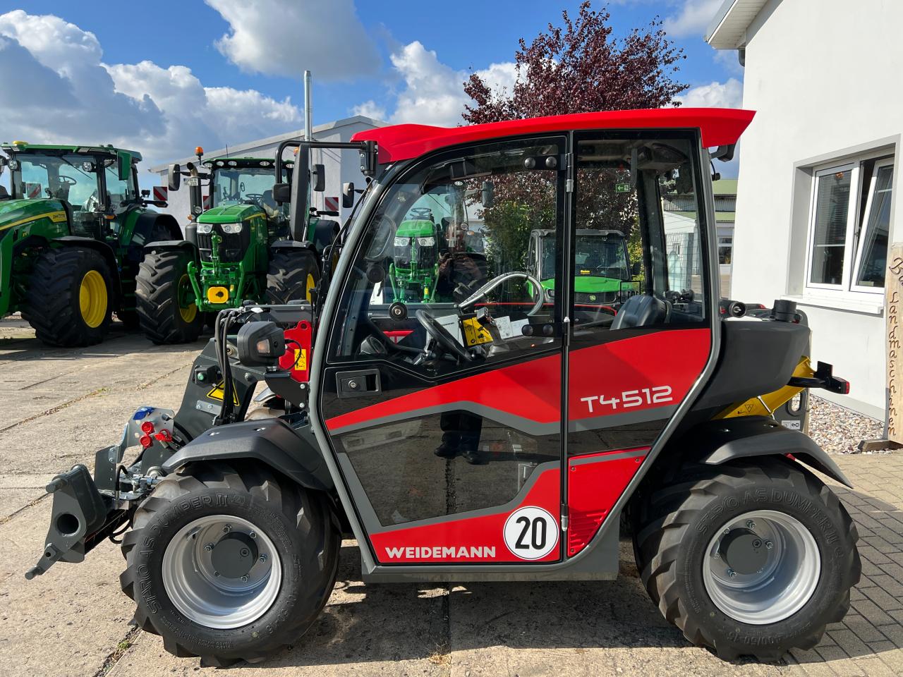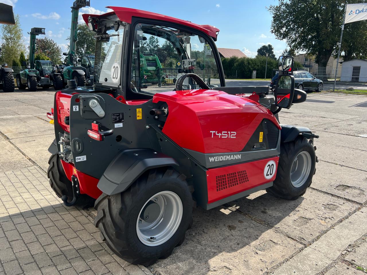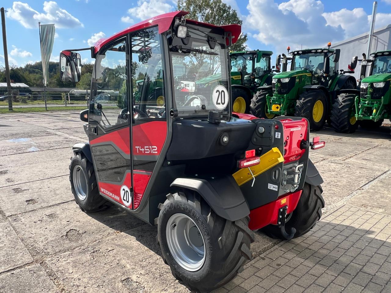 Beschreibung:Weidemann T4512 Teleskoplader Technische Daten: Gesamtlaenge (ohne Schaufel): 2991mm Hoehe: 1995mm Gesamtbreite (mit aktueller Bereifung):1560mm Bodenfreiheit: 294mm Max. Hoehe Schaufeldrehpunkt: 4537mm Max. Nutzlast: 1250kg Betriebsgewicht: 2750kg Serienausstattung: Motor Dieselmotor Yanmar mit 18,4 kW / 25 PS - Stufe V Fahrerstand Kabine mit Heizung und Lueftung ROPS / FOPS geprueft mit VSG-Sicherheitsscheibe auf der rechten Seite - Front-, Dach-, und Heckscheibenwischer; Beheizbare Heckscheibe - Neigungsanzeige; Armlehne mit Staufach; Sonnenrollo - Flaschenhalter; Ablagenetz Fahrersitz- Komfortsitz mit Sicherheitsgurt Antrieb / Achsen - Achse Planetenlenkachse PAL1165 - Antrieb hydrostatisch ueber Verteilergetriebe und Gelenkwelle, elektronisch geregelt - Fahrmodi Auto-Modus; ECO-Modus (Reduzierung der Motordrehzahl bei Erreichen der Geschwindigkeit) - Geschwindigkeit 20 km/h - Betriebsbremse Hydraulisch betaetigte Scheibenbremse an der VA, ueber Gelenkwelle auf HA - Parkbremse Elektro-hydraulische Federspeicherbremse an der VA, ueber Gelenkwelle auf HA Ladeanlage - Hubzylinder 1; Kippzylinder 1 Hydraulik - Mechanisch vorgesteuerter Joystick mit Fahrtrichtungsschalter und Teleskopfunktion - 3. Steuerkreis vorne ueber Hebel - vls (Vertical Lift System), Hydraulikoelkuehler Sonstiges- Rueckfahrwarneinrichtung (akustisch) Sonderausstattung: - Handgas + Fussgas - Langsamfahreinrichtung - Aufnahme Euro hydraulisch - 3.Steuerkreis elek. hydr. Dauerbetrieb - Druckloser Ruecklauf vorne inkl. Leckoelleitung - Druckentlastung 3.Steuerkreis elektrisch - Beleuchtung StVZO- 2x LED-Arbeitsscheinwerfer vorne - 1x LED-Arbeitsscheinwerfer hinten - 1x LED-Arbeitsscheinwerfer Ladeanlage - Steckdose 7-polig hinten - Bereifung 400/50-15 Starco AS Dump - Lenksaeule verstellbar - Radio mit DAB+ Empfang - Einzelbetriebserlaubnis - Rangierkupplung und K50 Anbaugeraete - optional Anbaugeraete (Schaufel, Palettengabel, Kroko, Gabel, Ballenspiess) sofort verfuegbar Preis: 47.800 Euro Euro + Steuer